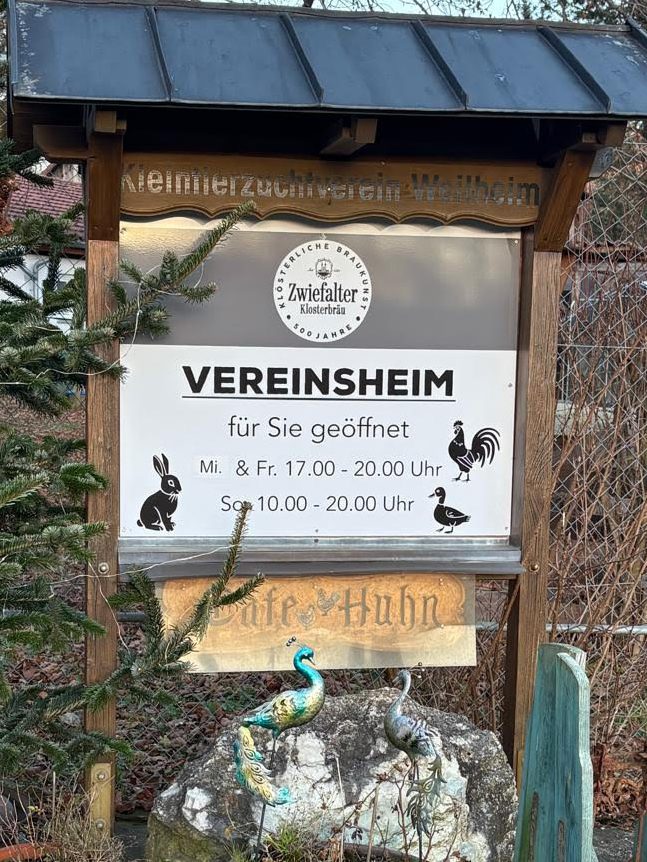 Die Zuchtanlage ist an die Öffnungszeiten vom Vereinsheim Café Huhn gebunden.